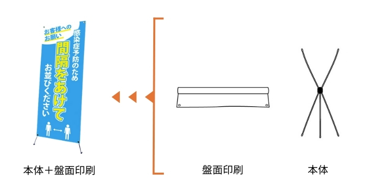 バナースタンドは主に、「本体」と「盤面印刷」でできています。