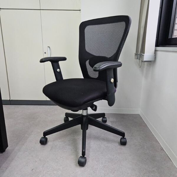 肘掛け付きで背幅が広めの、少しグレードの高いオフィスチェアです。