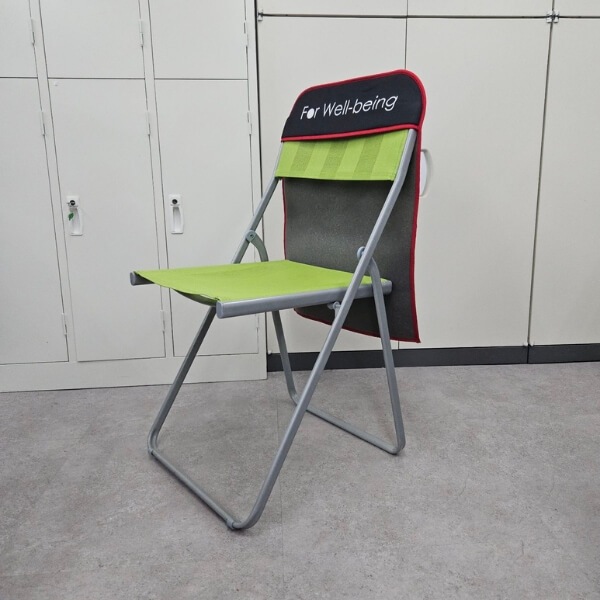 次はこちらの緑色の折りたたみ椅子です。