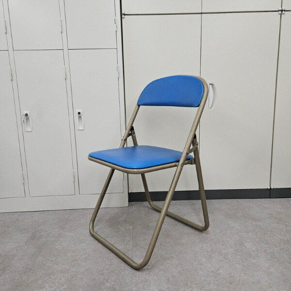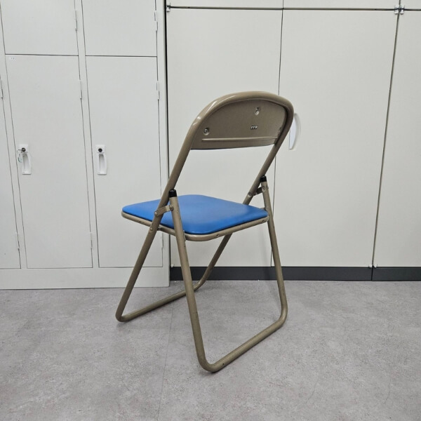 構造は定番のパイプ椅子と同じですが、背もたれが少し角ばっているタイプです。
