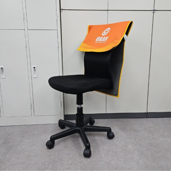 次に、オフィスなどでよく使用されているキャスター付きの椅子にかけてみます。