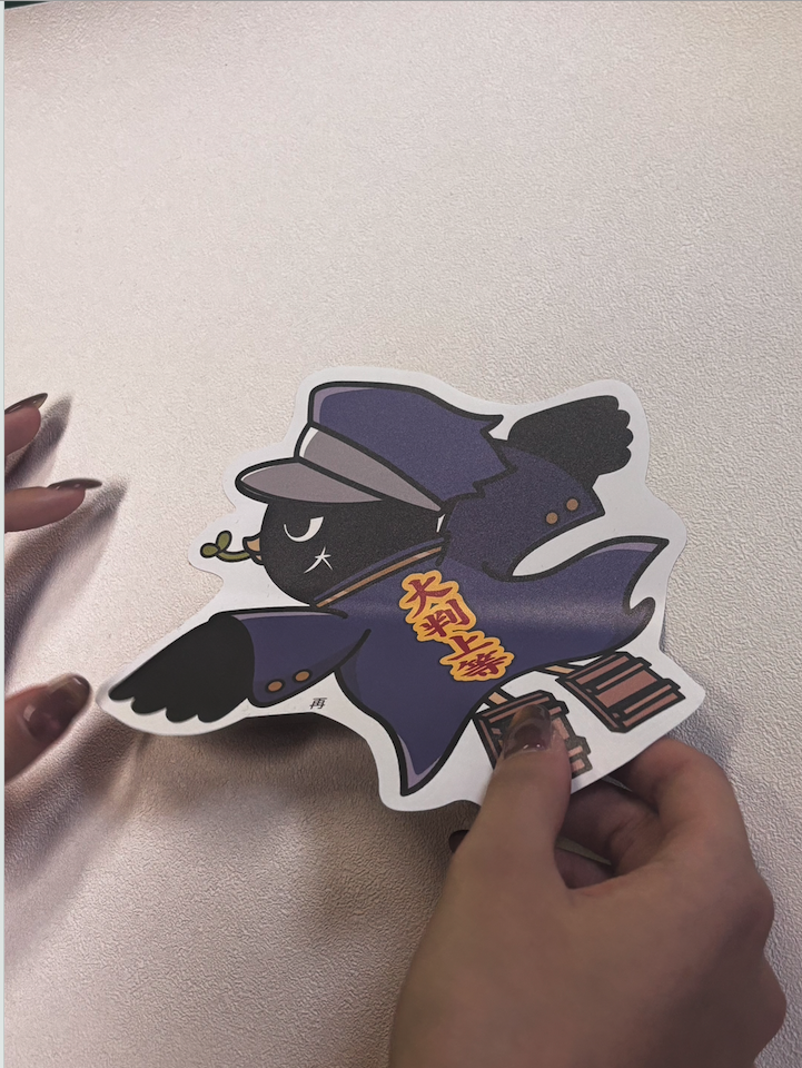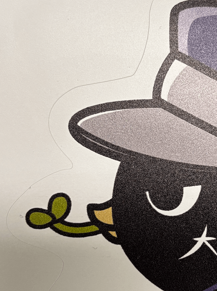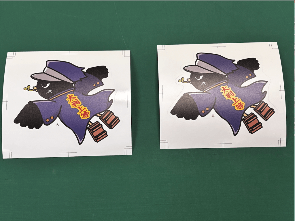 両方とも変形カットが可能なため、大判プリントの達人公式キャラ「オオバン番長」の形にカットしたシールで比較していきます!
