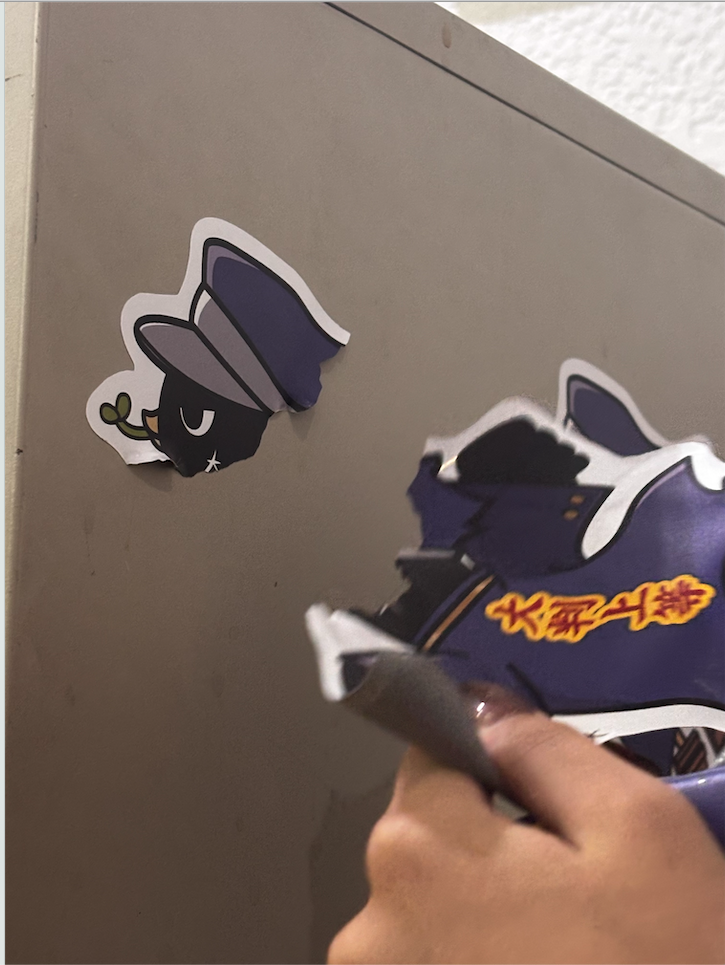 大きな凹凸がありますが、意外にも大判ステッカーはしっかりと貼り付いていました。剥がす際は、一箇所端をめくることができれば、比較的簡単に剥がすことができました。