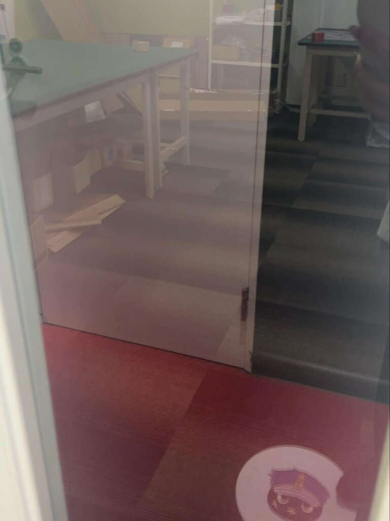 定番の窓から、普段推奨していないクロス(壁紙)、塗装が剥げてしまうリスクを覚悟してあえて塗装された壁やロッカーにも張り付けてみました。